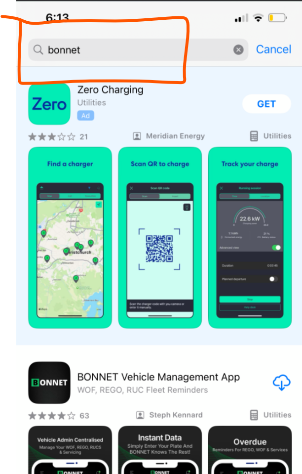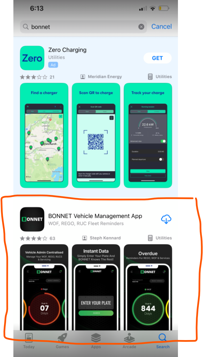- In the search bar, type in “BONNET” and then tap search. Look for the app with our BONNET logo (see below)
